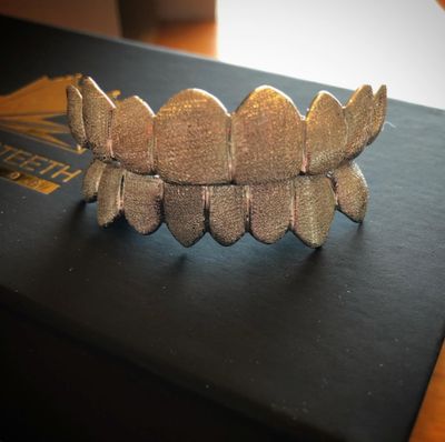 The customer then signs off on the design and pays their deposit accordingly which is usually 40-50% of your purchase. Once we have the mold of your teeth the average build time for a grill is 4 - 6 weeks. Once your grill is completed it will go through our QA/QC (Quality Assurance Quality Control) process to make sure the grill is built exactly the way you had hoped. After this your grill goes to our LQPT department which will laser mark your grill with the gold and diamond weights along with our company logo on the inside of the teeth.