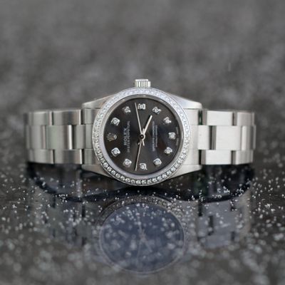 Rolex 31mm Steel Oyster Perpetual Grey Slate Diamond Bezel / Dial added 0.85cttw Ref:67480 WA00119