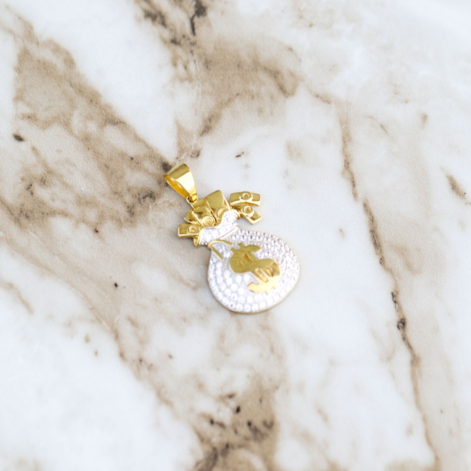 You know the mission—stack, flip, repeat. The Moneybag Pendant is for the ones who hustle hard and cash in. Crafted in Sterling Silver with CZ shine, this piece is a bold reminder that the grind never stops, and neither does your style.